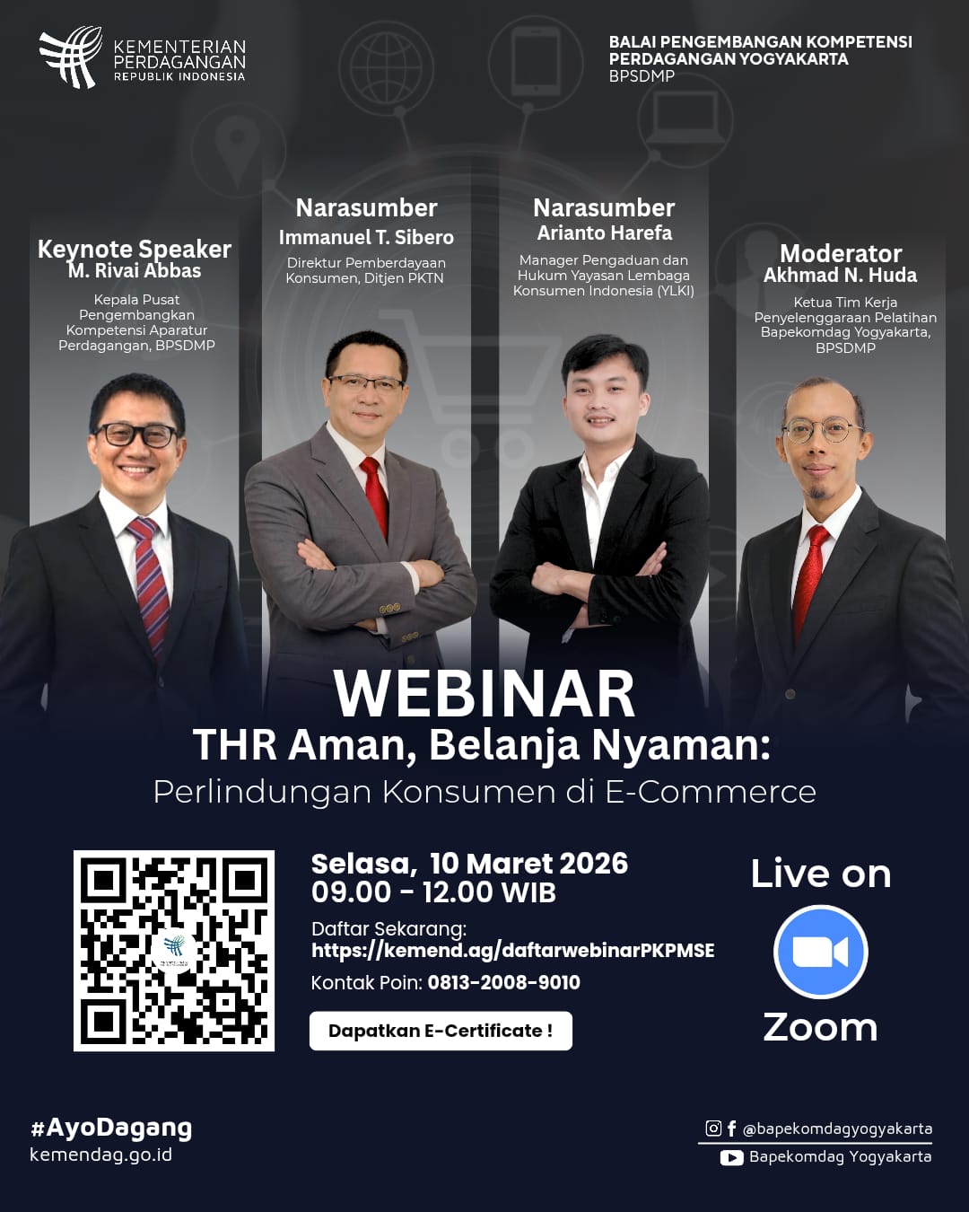 Selain itu, dalam rangka memberikan wawasan praktis secara lebih luas mengenai proses kurasi produk yang efektif kepada para aparatur bidang perdagangan sehingga diharapkan dapat membekali pelaku usaha daerah agar mampu bersaing dan berkelanjutan di pasar global yang lebih kompetitif, maka Bapekomdag Yogyakarta akan menyelenggarakan kegiatan Kegiatan Webinar dan Sharing Knowledge