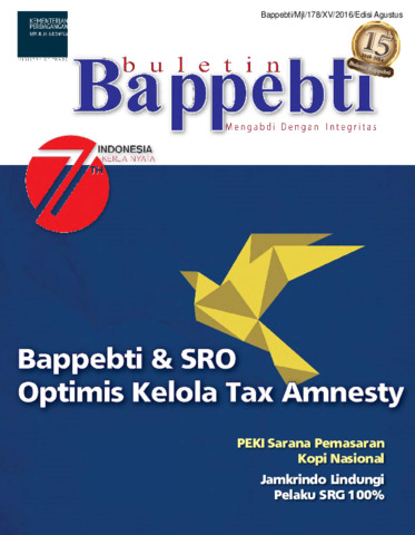 Kementerian, Perdagangan (2016) Bulletin Perdagangan Berjangka Agustus 2016: Bappebti & SRO Optimis Kelola Tax Amnesty. Other. Kementerian Perdagangan, Jakarta.